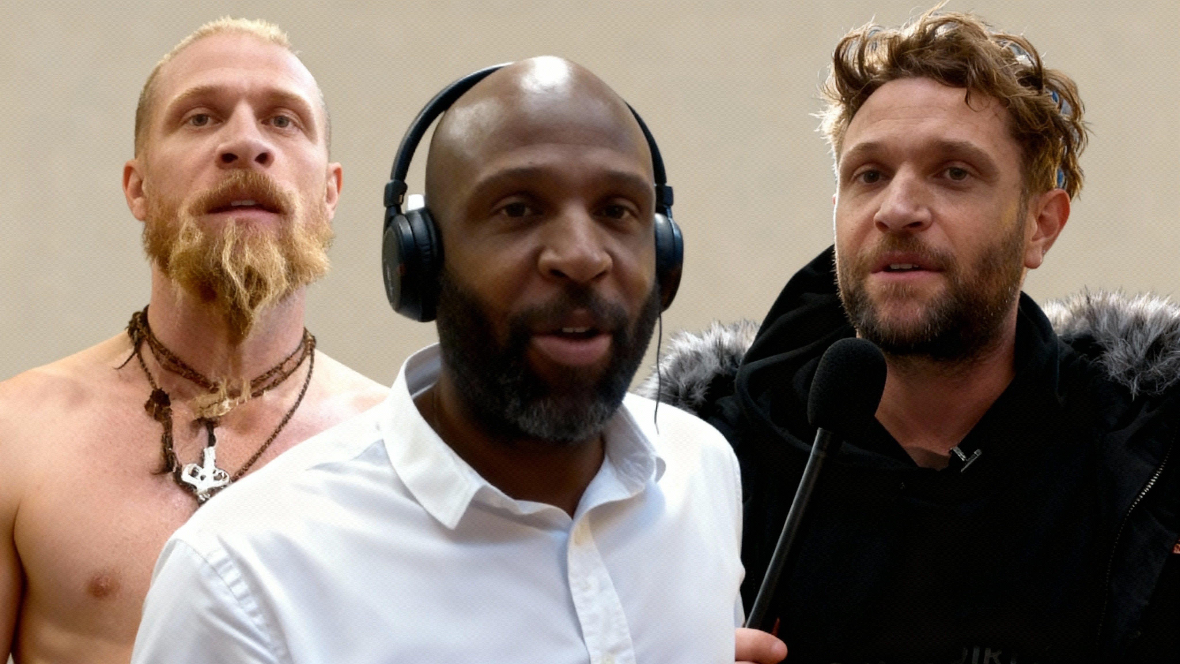 Pointing finger comes up from the left bottom side looking like it comes from the left hand person pointing towards the sky