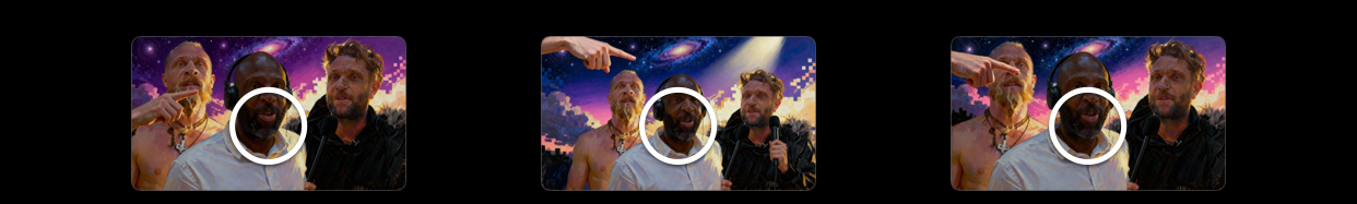 “ Painterly style, dramatic lighting , the people are in front of a twilight scene with galaxies and dramatic pixelating painterly clouds do not change peoples faces, heads or clothing at all,